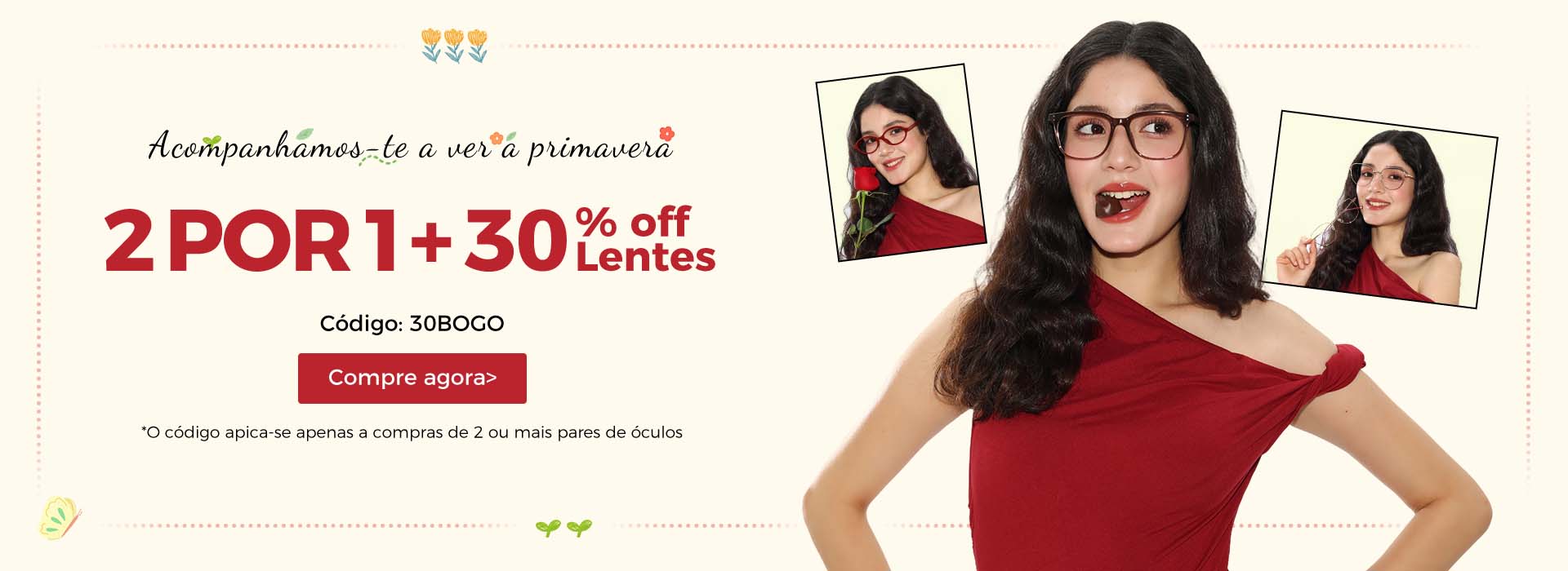 Leva 2 Paga 1 & -30% nas lentes! Código: 30BOGO