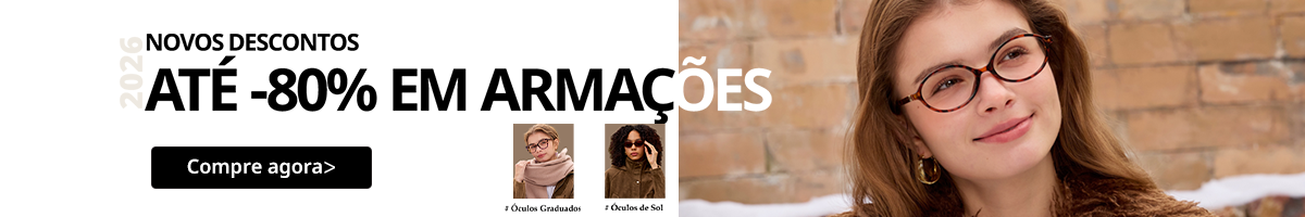 Novos descontos🎉até -80% em armação + 30% EXTRA!