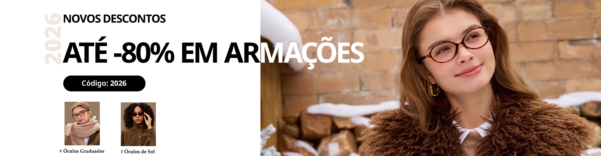 Novos descontos🎉até -80% em armação + 30% EXTRA!